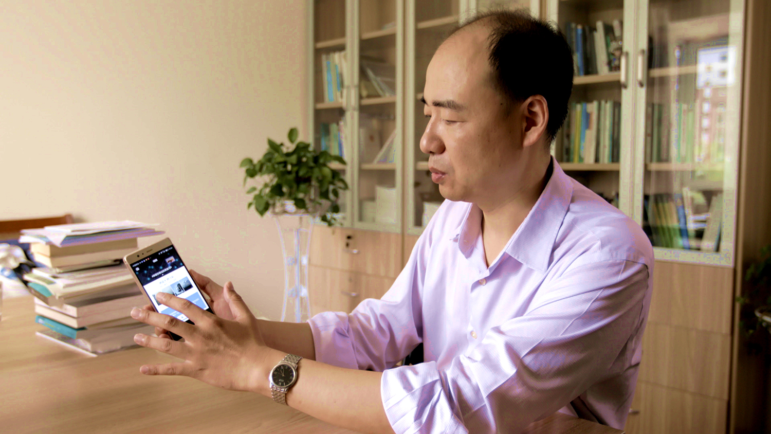 Ma Jun demonstrates the "Black & Smelly Rivers" app.