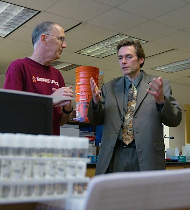 Jeff and Marc discussing lead in the water testing lab at Virginia Tech.