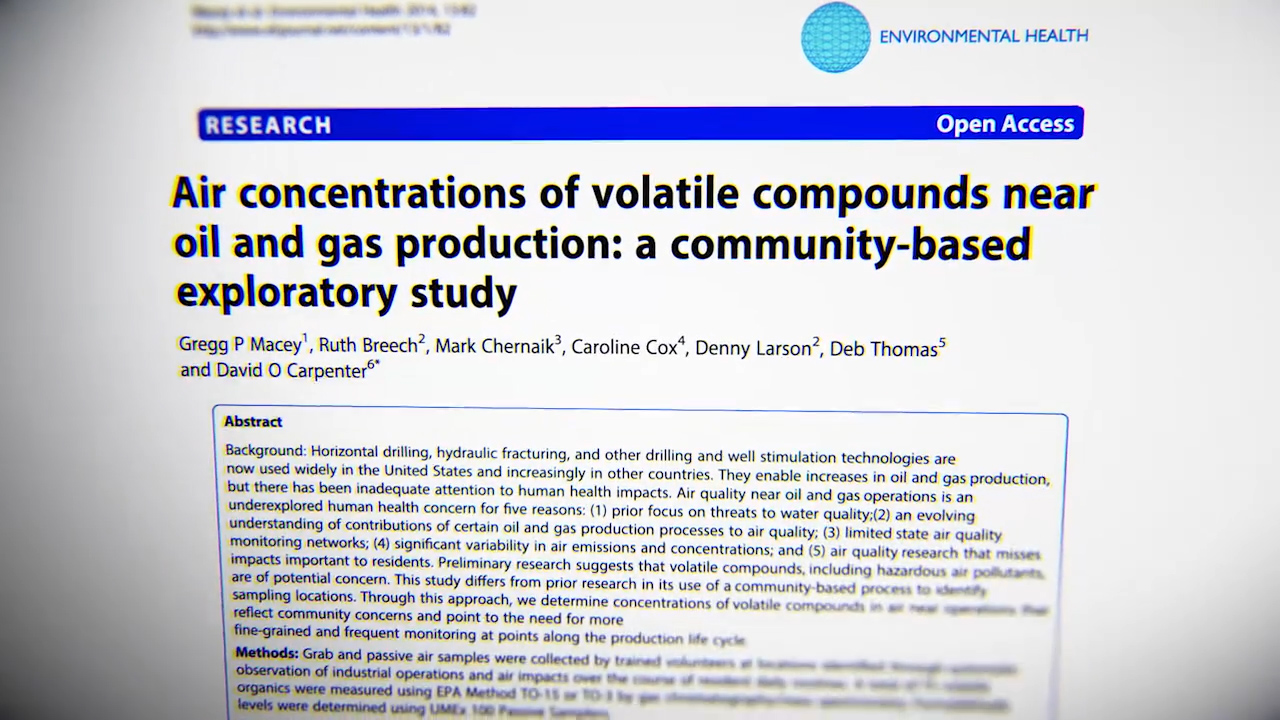 There was a previous report that we did in New Mexico and Colorado. We produced a groundbreaking study that showed a lot of really high results. We released it nationally, but got very little coverage. We needed to bring the East coast into this, Pennsylvania and New York are in a big throw down out there with the frackers. We picked those states as well as Colorado again, but also other legacy states like Wyoming, Arkansas and Ohio. We did get a lot of national attention; National Geographic, all the British papers picked it up because the journal is published out of London. There was widespread coverage across the US and also globally of both the peer reviewed study and the report, and it had a major impact in the Department of Health, New York State. At the press conference announcing the fracking ban, they held up the study and said, "Here's some of the things we relied on." It was very gratifying.