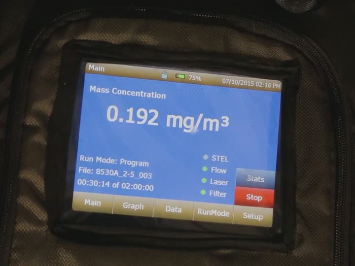A reading from the DustTrak aerosol particle monitor used by WOEIP volunteers.