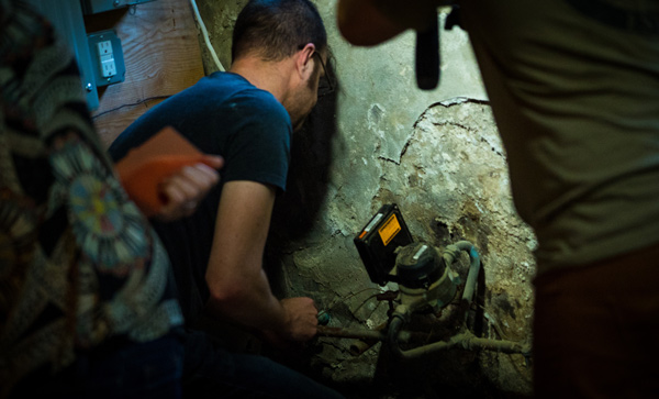 Co-founder of Philly Unleaded, Tony Spagnoli, goes under his house to look for lead service lines.
