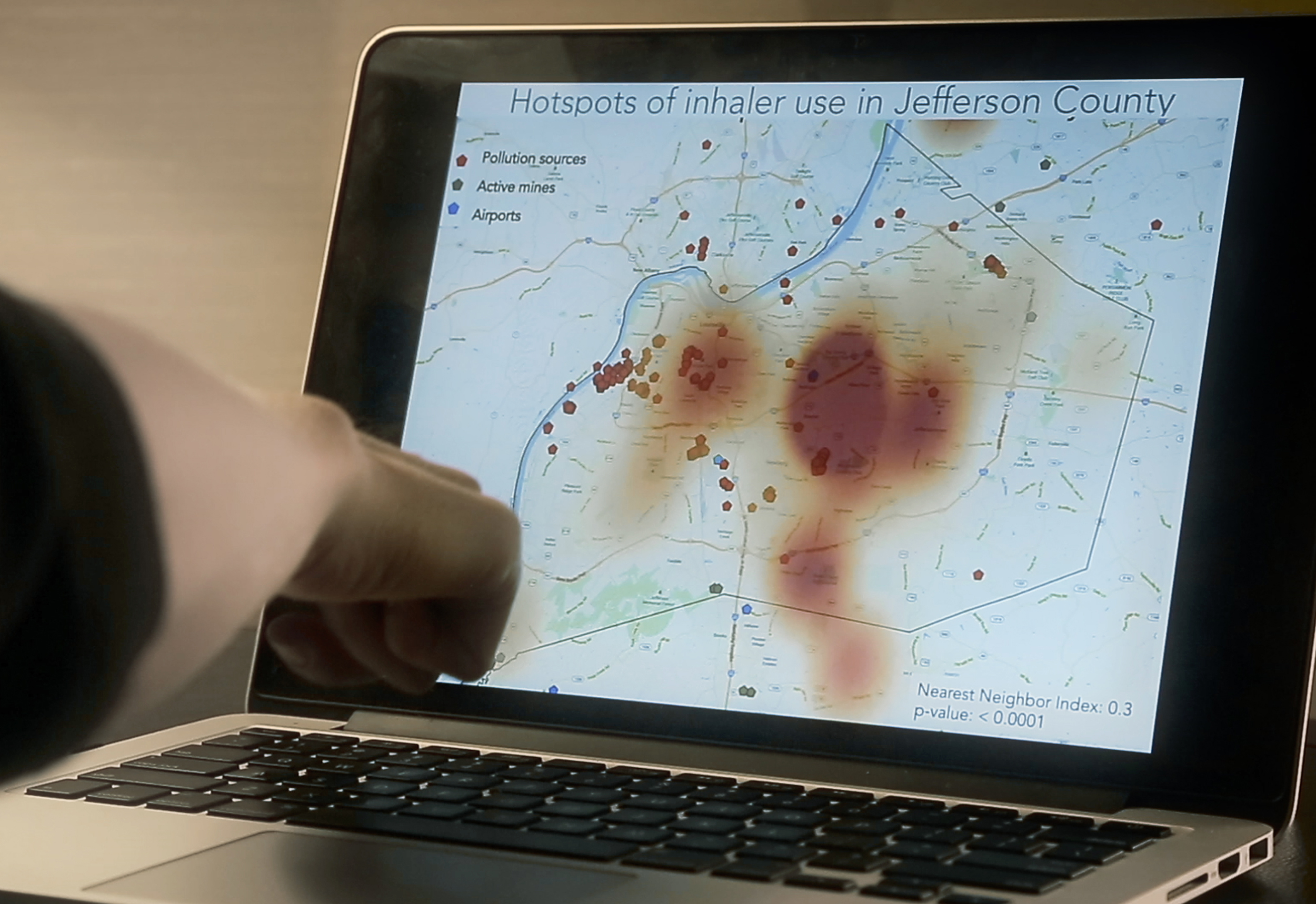 What we were able to do is take the thousands of data points that were received in the pilot and aggregate them and itemize them, and then look to see where a higher density of asthma inhaler use was more dense than expected. We did find significant clusters. Interestingly, we saw a cluster that was just east of downtown, a more affluent area, which was something that was very unexpected. We expected to see the highest density of inhaler use right near where we see the highest level of emissions, along the industrial corridor. What's interesting is that we see it's not just so simple as (the place) where air pollution is emitted, that's where you're going to see the asthma burden. It's an interplay of emissions, neighborhood characteristics, and where people spend their time as well as the impact of air quality and wind. We suspect that the wind actually is a significant predictor of asthma.