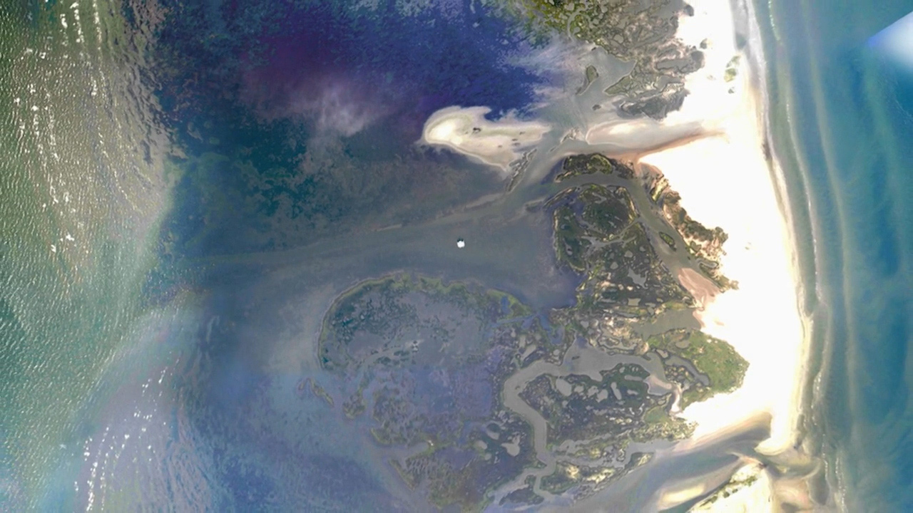 A guy named Tony got us onto a police boat, actually. We weren’t sure why they were interested, the Lafourche Parish Port Commission, but of course they were worried about the damage to their community. By the end of that day, we were out on a boat and they were driving fast enough to put a kite in the air. We took the first couple of photos which were good, but it wasn’t a big map or anything. It was sort of a proof of concept.