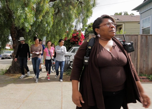 I started out with West Oakland Environmental Indicators in '08. I did the truck survey for them, where we sat at different locations in West Oakland. We were counting all the trucks that were coming into each intersection. In an hour to two hours time, we counted over three to four thousand trucks coming into different sections of our neighborhood. From that study we were able to adapt a trucking route. Something that really bothered me about that study was I wore white one day. Not even a few hours after I was out there, I looked down at my socks and they were just as black. You can imagine with us sitting there all day and no mask on, how much we were inhaling, how much of that was going into our bloodstream. The first year that I started doing walks with my DustTrak, I got asthma. It's crazy to me why they continue to put these trains on the track with all these toxins, with schools right by these places where they know they're contaminating people.
